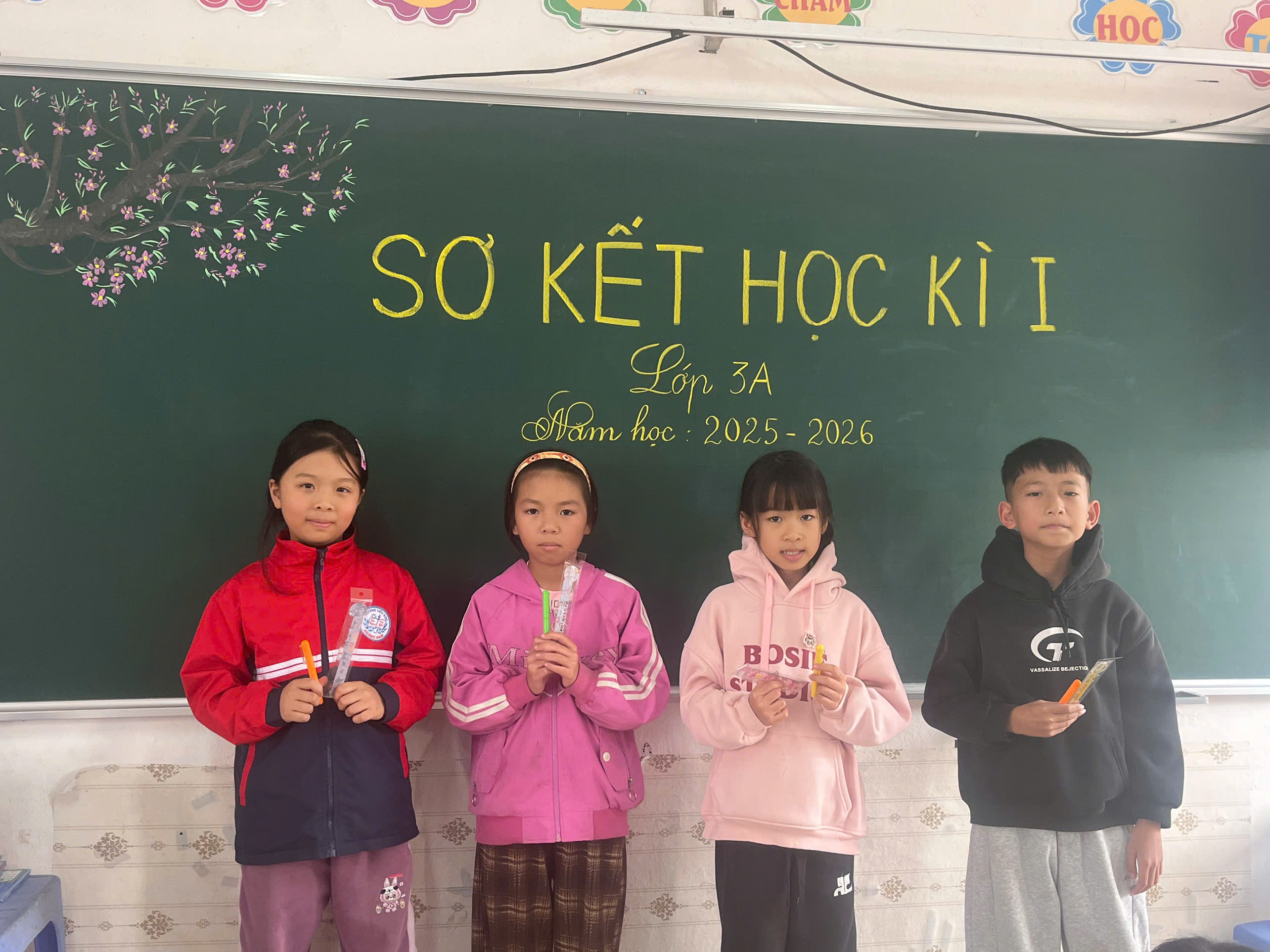 Học kì I năm học 2025- 2026 đã khép lại, đánh dấu một chặng đường học tập với nhiều cố gắng và nỗ lực của các em học sinh. Trong suốt học kì vừa qua, đa số các em có ý thức học tập tốt, chăm chỉ nghe giảng, tích cực tham gia các hoạt động học tập và rèn luyện trên lớp. Nhờ sự nỗ lực đó, nhiều em đã đạt được kết quả học tập đáng khích lệ. Cụ thể, có học sinh đạt 2 điểm 10, 2 điểm 9 hoặc 1 điểm 9 và 1 điểm 10, thể hiện tinh thần học tập nghiêm túc, sự cố gắng vươn lên và khả năng tiếp thu bài tốt. Để ghi nhận những cố gắng của các bạn học sinh lớp đã có 1 vài phần quà nhỏ để khích lệ, động viên các bạn tiếp tục cố gắng trong học kì II sắp tới.