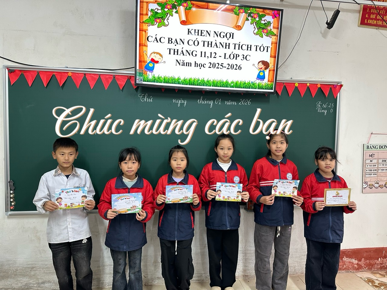 Hoạt động khen thưởng học sinh có tiến bộ: Nhằm kịp thời động viên, khích lệ tinh thần học tập, lớp 3C đã tổ chức tuyên dương những bạn có thành tích tốt, tiến bộ rõ rệt trong học tập và rèn luyện trong hai tháng 11 và tháng 12. Những lời động viên chân thành, những tràng pháo tay và ánh mắt tự hào chính là nguồn động lực để các con thêm tự tin, chăm ngoan và không ngừng nỗ lực mỗi ngày.