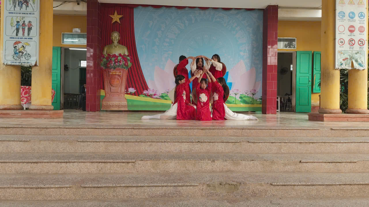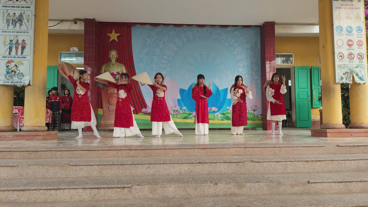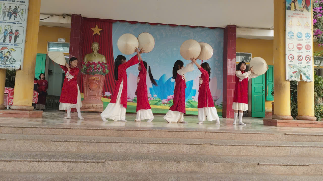 Hình ảnh những tà áo dài đỏ thắm hòa cùng những chiếc nón lá truyền thống đã tạo nên một bức tranh nghệ thuật đẹp mắt, góp phần tôn lên nét đẹp văn hóa Việt Nam. Tiết mục không chỉ thể hiện sự khéo léo, tự tin của các “vũ công nhí” lớp 4C mà còn khơi dậy trong mỗi người niềm tự hào về quê hương, đất nước.