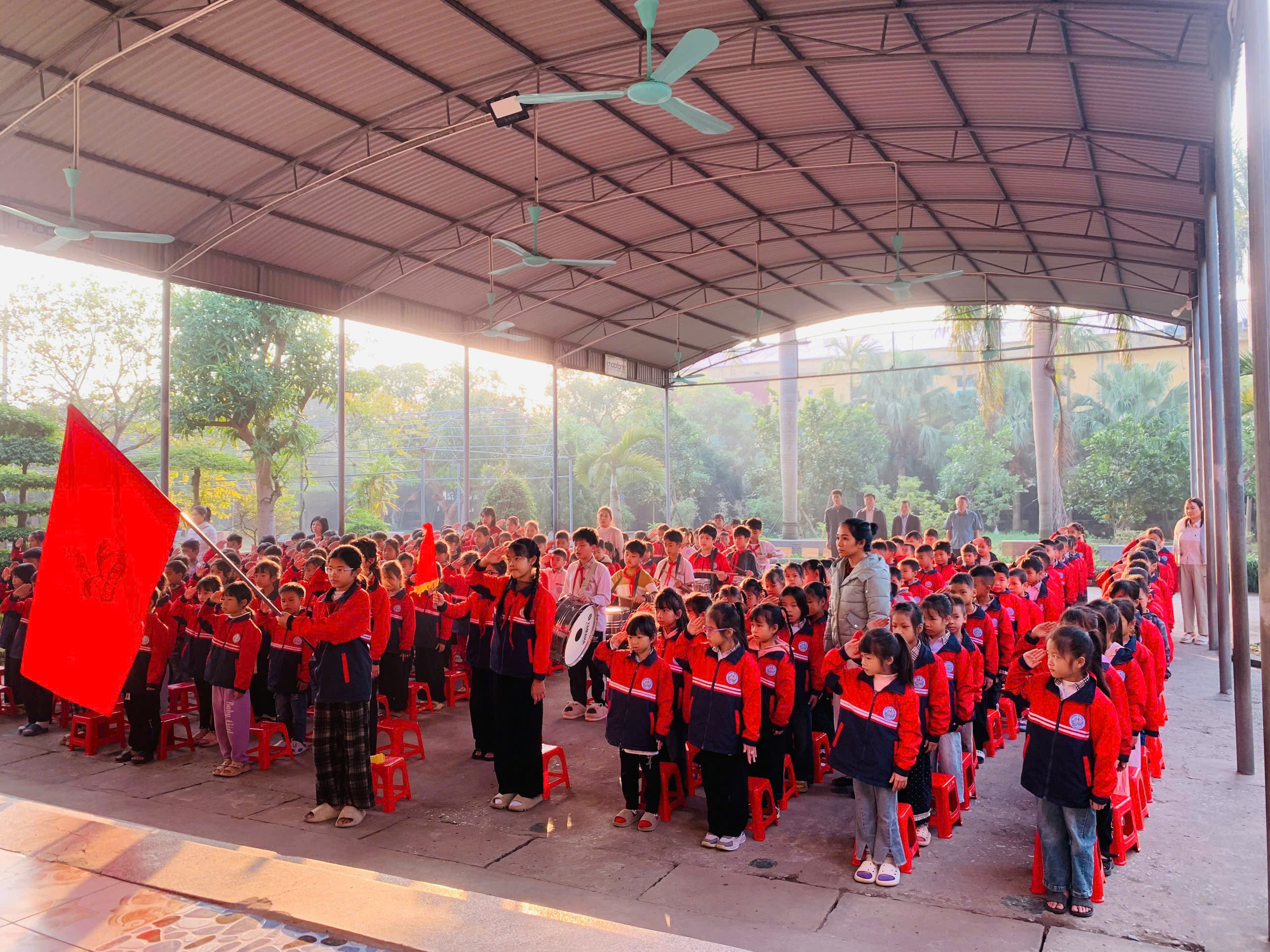 Học sinh tại điểm trường B chào cờ hát quốc ca