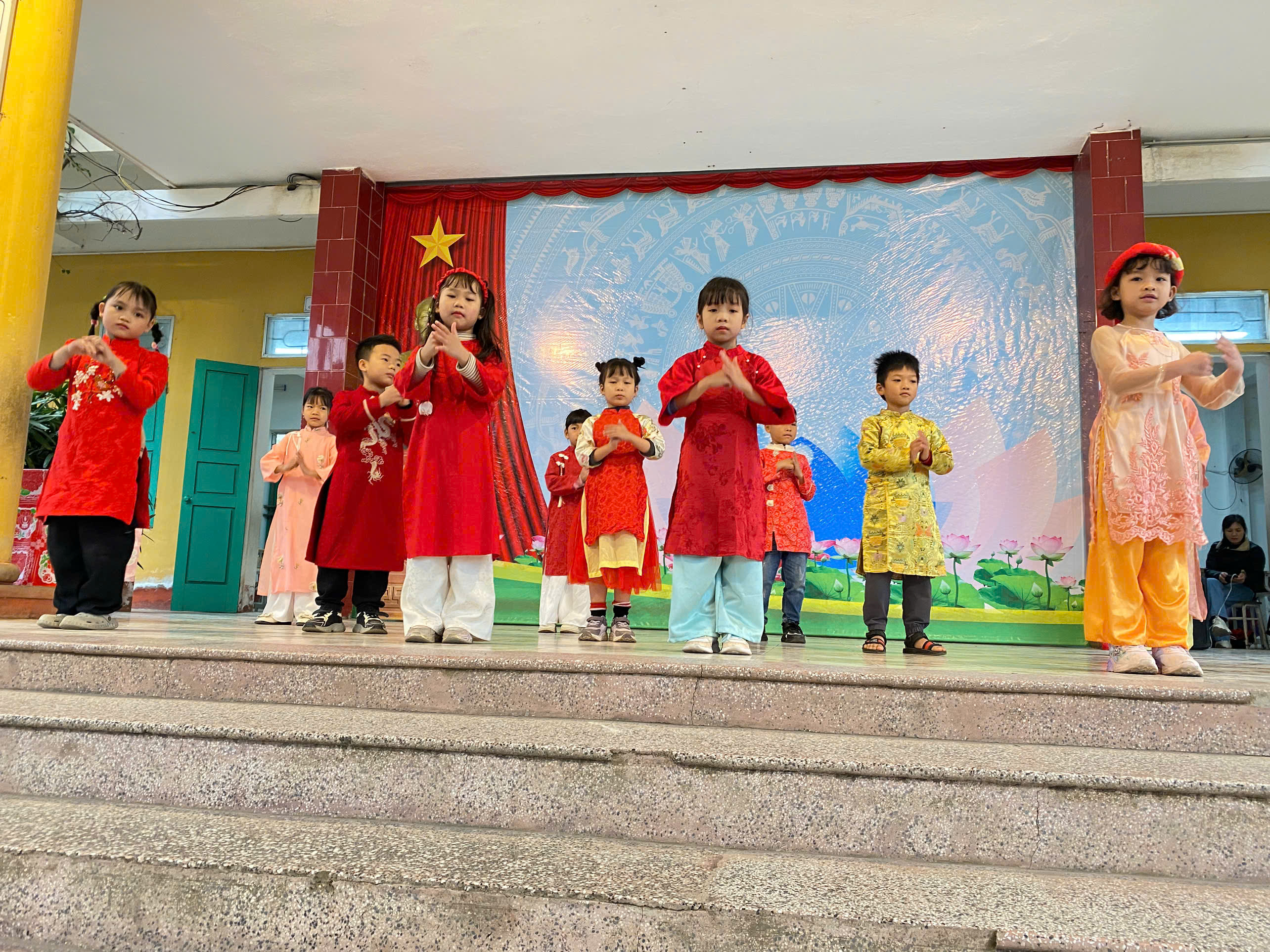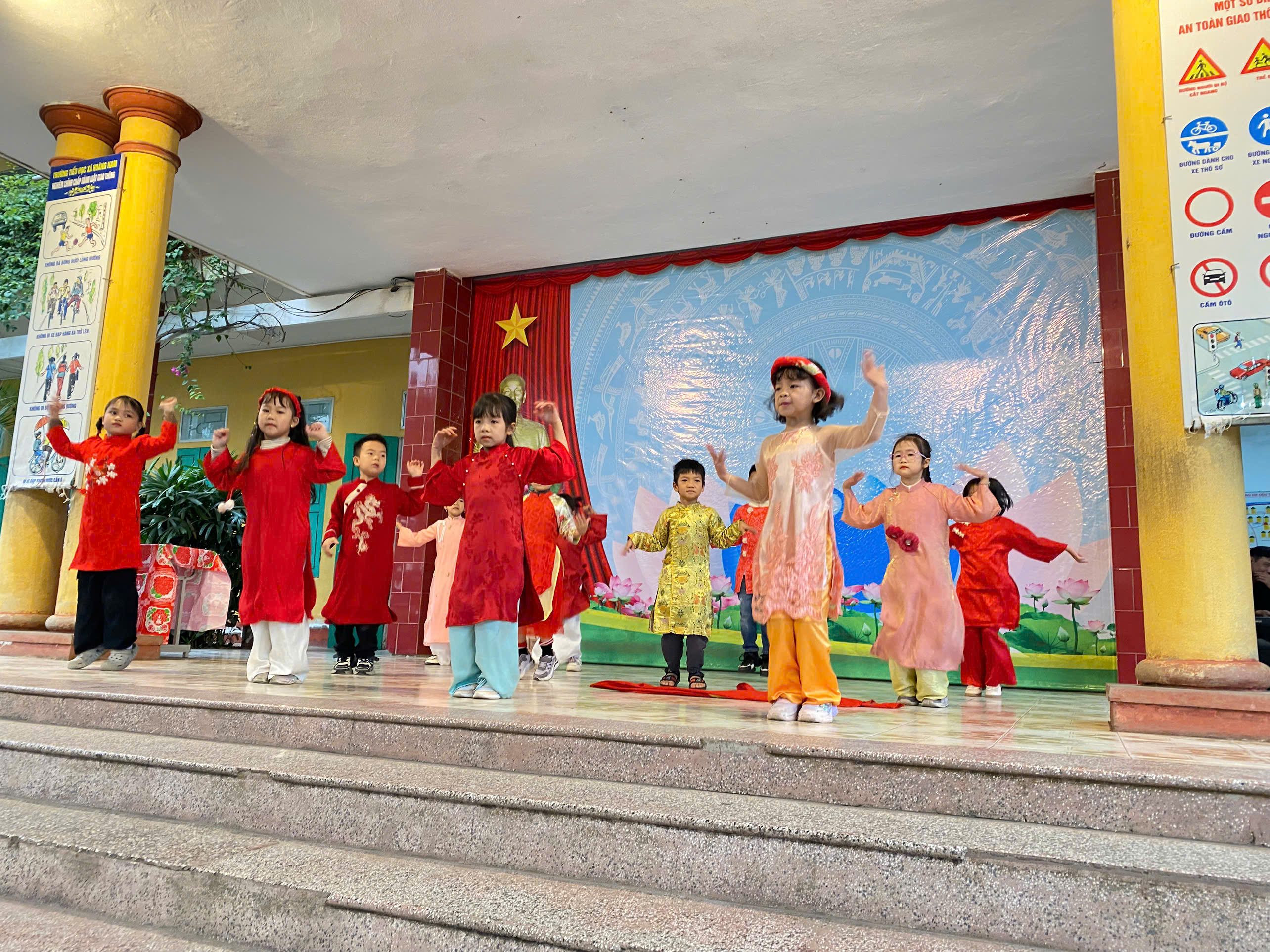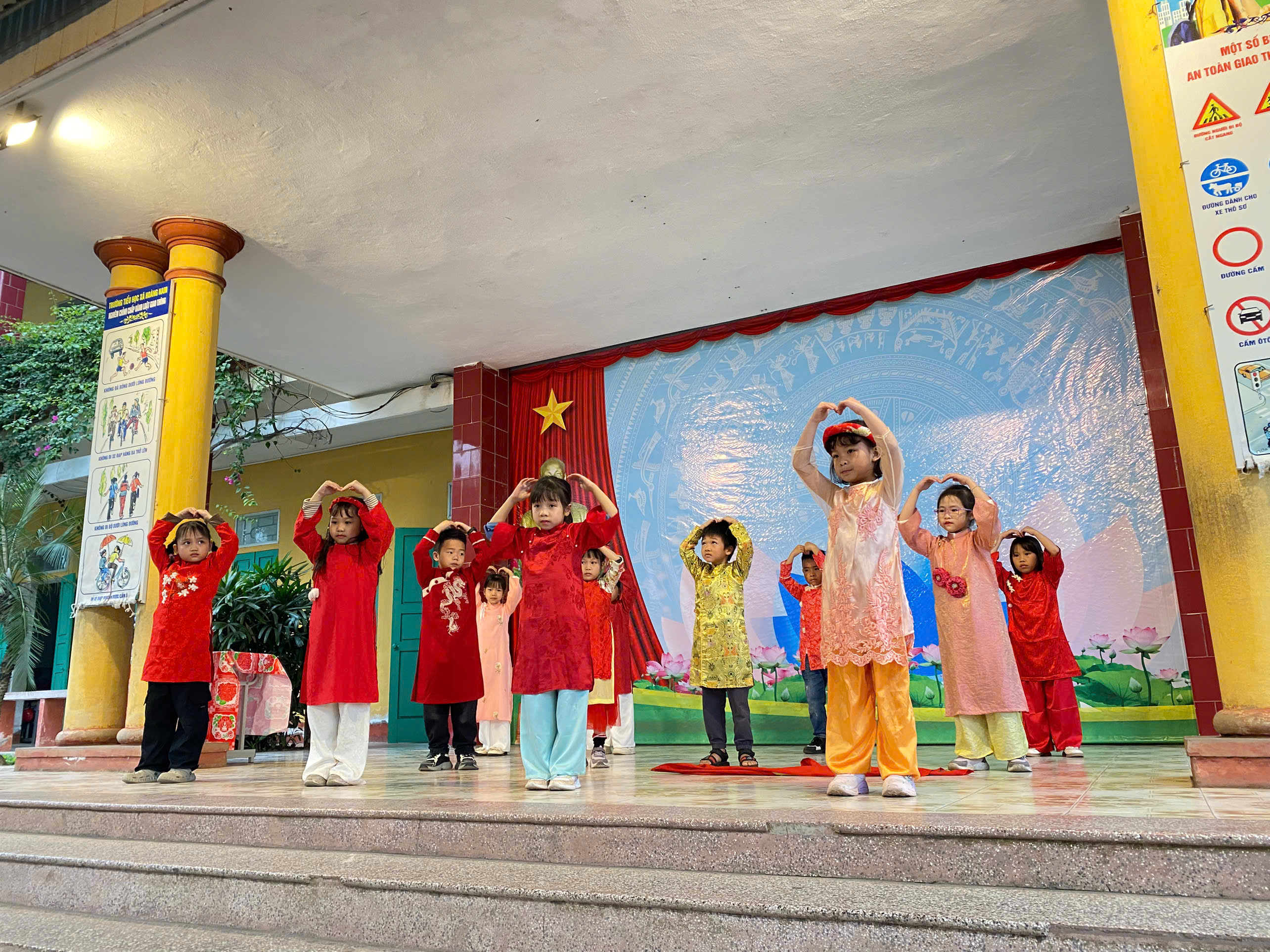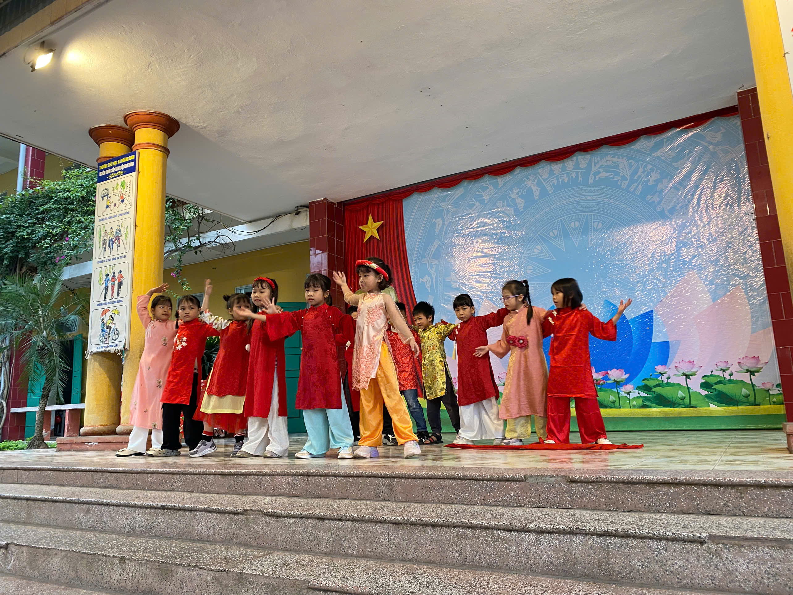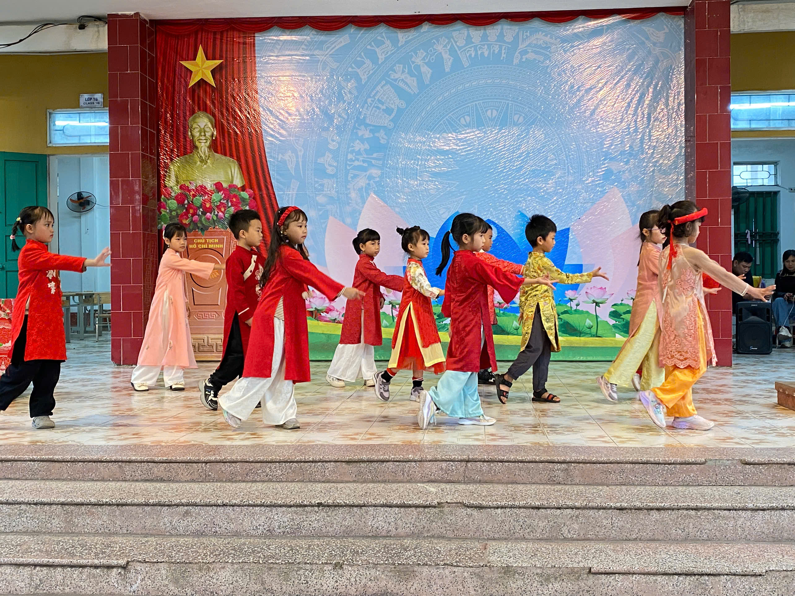 Các bạn học sinh lớp 1D múa bài: “Những trái tim Việt Nam”