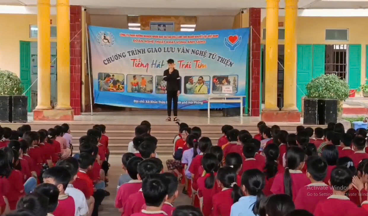 Tiết mục đơn ca“Thương lắm thầy cô ơi” trong chương trình giao lưu văn hóa, văn nghệ “Nghệ thuật tình thương”